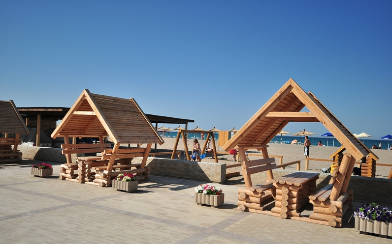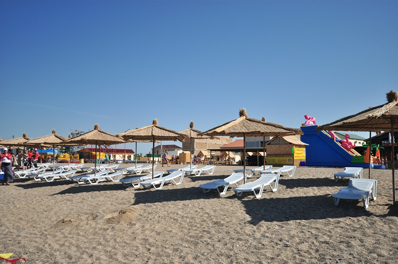 Отличается Прибрежное и своей природной составляющей. Курорт располагается в степной местности, прямо на морском побережье. Многие отдыхающие очень любят Чёрное море, но по разным причинам предпочитают песчаный берег галечному. Здесь Вас ожидают прекрасные песчаные пляжи, протянувшиеся на много километров вдоль линии моря. Они являются одним из главных преимуществ посёлка, благодаря которому его и выбирают местом для отдыха. Спуск к воде очень пологий, а дно понижается постепенно, поэтому здесь очень удобно и безопасно купаться даже с маленькими детьми. Кроме того, на берегу находятся многочисленные развлечения и аттракционы. Это и водные шары, горки, катамараны, «бананы» и многое другое. Сами пляжи всегда очень чистые, их регулярно убирают и тщательно следят за чистотой. Есть как обычные пустынные участки побережья, так и оборудованные зонтами, навесами от солнца, урнами и прочим. Можно взять напрокат шезлонг или другие пляжные принадлежности.