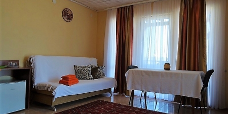 Очень хорошо развита инфраструктура Прибрежного. Здесь прекрасный выбор заведения для питания: кафе, бары, небольшие уютные ресторанчики, столовые, а также широкий ассортимент жилья на любой вкус и размер бюджета. Среди прочих предложений очень выгодно выделяется гостевой дом «Олио». Большим преимуществом домовладения является наличие частной территории, в пределах которой обустроен озеленённый дворик с беседкой для отдыха, мангалом и автостоянкой. Номерной фонд располагает номерами категорий «стандарт» и «2-комнатный», в которых есть всё необходимое для комфортного отдыха со всеми удобствами. Отдых в Прибрежном станет для Вас самым радостным и приятным воспоминанием с гостевым домом «Олио»!