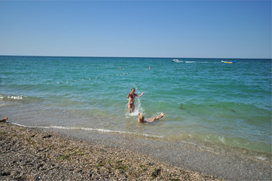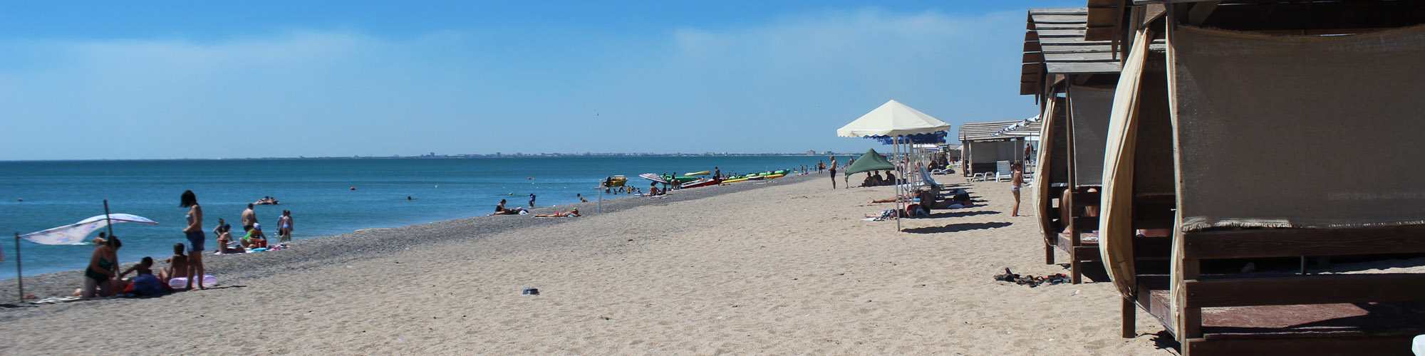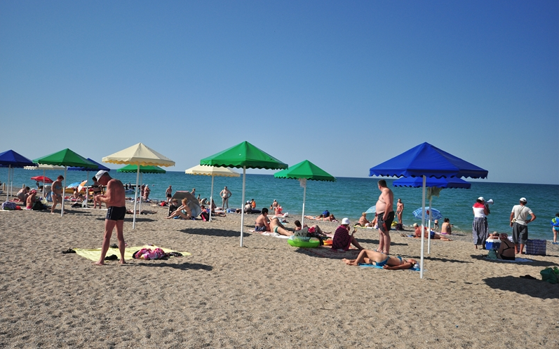 Отличается Прибрежное и своей природной составляющей. Курорт располагается в степной местности, прямо на морском побережье. Многие отдыхающие очень любят Чёрное море, но по разным причинам предпочитают песчаный берег галечному. Здесь Вас ожидают прекрасные песчаные пляжи, протянувшиеся на много километров вдоль линии моря. Они являются одним из главных преимуществ посёлка, благодаря которому его и выбирают местом для отдыха. Спуск к воде очень пологий, а дно понижается постепенно, поэтому здесь очень удобно и безопасно купаться даже с маленькими детьми. Кроме того, на берегу находятся многочисленные развлечения и аттракционы. Это и водные шары, горки, катамараны, «бананы» и многое другое. Сами пляжи всегда очень чистые, их регулярно убирают и тщательно следят за чистотой. Есть как обычные пустынные участки побережья, так и оборудованные зонтами, навесами от солнца, урнами и прочим. Можно взять напрокат шезлонг или другие пляжные принадлежности.