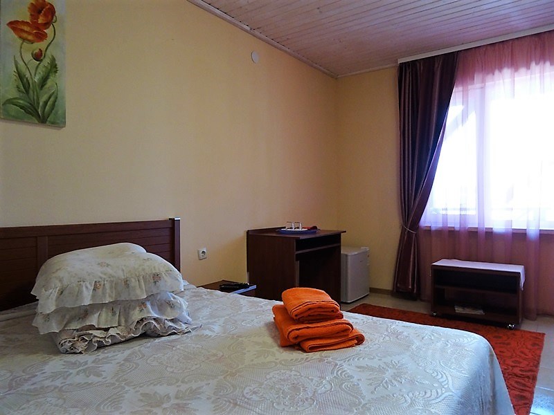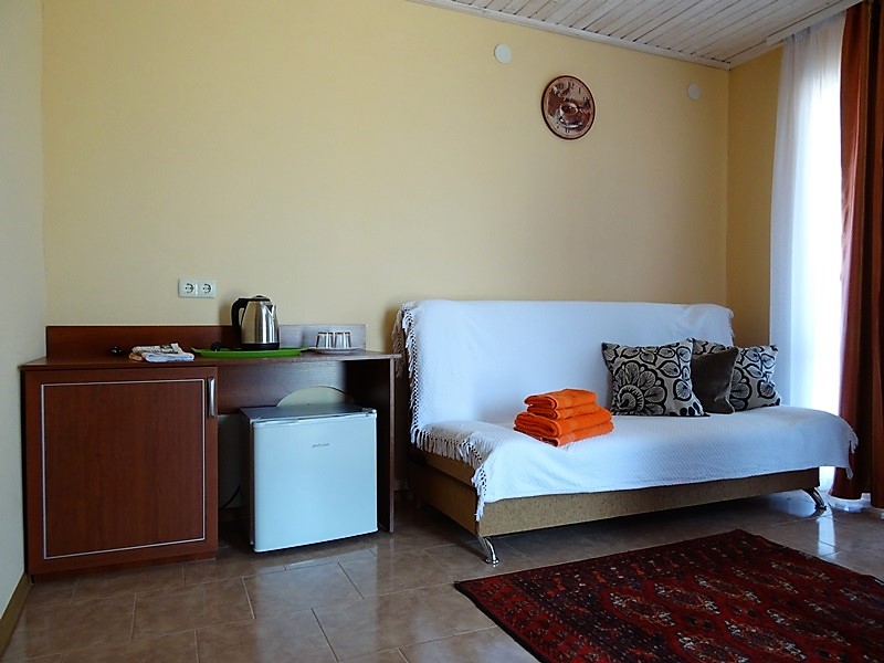 Очень хорошо развита инфраструктура Прибрежного. Здесь прекрасный выбор заведения для питания: кафе, бары, небольшие уютные ресторанчики, столовые, а также широкий ассортимент жилья на любой вкус и размер бюджета. Среди прочих предложений очень выгодно выделяется гостевой дом «Олио». Большим преимуществом домовладения является наличие частной территории, в пределах которой обустроен озеленённый дворик с беседкой для отдыха, мангалом и автостоянкой. Номерной фонд располагает номерами категорий «стандарт» и «2-комнатный», в которых есть всё необходимое для комфортного отдыха со всеми удобствами. Отдых в Прибрежном станет для Вас самым радостным и приятным воспоминанием с гостевым домом «Олио»!